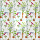 A garden themed fabric decorated with pen and ink illustrations of carrots and tomatoes with a blue dragonfly done in coloured pencil.