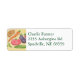 Collage of veggies - potato, tomato, eggplant, peas, carrot, radish, cucumber - on a return address label.
