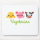 This simple design says Vegetarian with cute illustrations of a baby chick, a pig, and a cow. Show off your vegetarian pride!