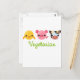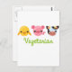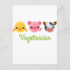 This simple design says Vegetarian with cute illustrations of a baby chick, a pig, and a cow. Show off your vegetarian pride!