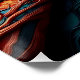 Experience 'Veins of Resilience,' where a human hand, up to the forearm, rests on charcoal granite. The artwork portrays an abstract impression of veins extending beyond the arm onto the granite. The textured hand, marked with wounds, is rendered in a captivating blend of turquoise and deep orange against a charcoal background, symbolising strength and resilience.