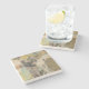 The coasters are gorgeous, a quality feel and heavy weight. They look like a precious archeological find. A rustic stone juxtaposed with a modern floral black and white print. I like the way the print goes slightly imperfect on the cut stone edges giving them a kind-of natural beauty.