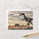 Velociraptor dinosaur observing pteranodon flying in the desert with nipa and tamaris plants by sunset light - 3D render