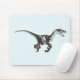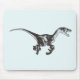 Cool blue background with semi-silhouette of Velociraptor. Screen print-style. The ultimate in dinosaur-cool.