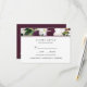 An elegant, modern floral wedding response card with a beautiful arrangement of watercolor flowers in tones of plum, velvet, pink rose gold, ivory and green topping your desired response date, custom accept and decline wording and meal option selection.