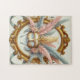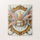 Step into a world of opulence and mystery with this stunning masquerade-inspired puzzle. Framed in ornate gold and adorned with soft, flowing feathers in blush, ivory, and muted blue, this design captures the essence of royal celebration and hidden identity.