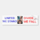 vendetta america mask, UNITED WE STAND, DIVIDED... Bumper Sticker