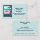 A business card featuring a vending machine graphic. A modern and professional design. Great for a vending company or refreshments solutions provider. The back of the card has your name and contact details as well as a tagline. Edit the text templates for your own custom business card!