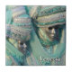 This customised ceramic tile features a masked couple wearing exquisite pale green embroidered costumes at The Carnival of Venice, Italy.