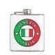 The flask itself is fine. It’s a cheap flask, obviously bought in bulk, however am prepared to overlook that. Given that it is a personalized item, I would have liked to have seen gift boxing instead of the generic packaging. Terrible printing, and/or quality. It’s a cheap, tacky vinyl. It is not cut straight and is also applied in a way that it is overhanging the bottom, causing the glue to catch on items and it will eventually roll and tear, damaging the wrap.