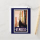 Vintage tourism and travel advertisement illustration for Venice, Italy. Design features gondolas on their canals. I added thoughtfully designed, colourful graphic borders.