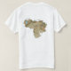 An editable title and slogan accompanies the white stars on a blue band with a yellow band above and red band below of the Venezuelan flag on the front of this t-shirt. The back displays a detailed map of Venezuela.