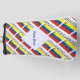 Personalised golf head cover with a tiled design featuring the Venezuelan Flag with the word VENEZUELA underneath. A white fractal made up of squiggly squares, holds a spot for your name, in blue letters, allowing you to create a personalised look or a customised gift. Travelers will like this design, as will family members. Fun for golf tournaments played at travel groups and family reunions.
