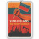 This souvenir custom cut waterproof vinyl sticker features a graphic image for Venezuelan pride featuring a Venezuelan flag, images of petroleum industry infrastructure and the saying: "Venezuelans We Pump Harder"