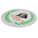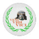 Ancient Roman military helmet made of copper metal. Text Veni, Vidi, Vici. Drawing of a green laurel wreath around. Square format products and gifts