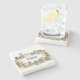 The coasters are gorgeous, a quality feel and heavy weight. They look like a precious archeological find. A rustic stone juxtaposed with a modern floral black and white print. I like the way the print goes slightly imperfect on the cut stone edges giving them a kind-of natural beauty.