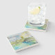The coasters are gorgeous, a quality feel and heavy weight. They look like a precious archeological find. A rustic stone juxtaposed with a modern floral black and white print. I like the way the print goes slightly imperfect on the cut stone edges giving them a kind-of natural beauty.