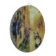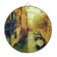 Bask in the romantic autumn glow of Venice, Italy with a beautiful Italian painting printed in earthy hues of rusty orange, golden yellow, and olive green. Wander down a quiet canal lined with moored boats and old buildings past a Venetian balcony with red flowers still in bloom. ♡ Idyllfire