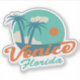 Celebrating the city of Venice and Venice Beach on Florida's west coast with a retro style illustration of the beach with palm trees and sunset. Vintage fonts and colour palette for a cool retro vibe.