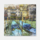 Beautiful Venice Gondola scene featuring two bright blue boats, with the canals and buildings in the background. Makes you want to hop onboard and take a ride down the Grand Canal.