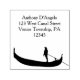 This square shaped return address stamp features a silhouette style illustration of a Venice gondola and gondolier beneath your name and address.