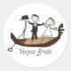 Destination Italy wedding favours and novelty gifts for brides tying the knot in Venice, Italy. Venice Bride t-shirts, apparel and keepsake destination Venice wedding favours feature illustration of bride and groom on a gondola with a gondolier. Add your own personalisation to these Venice Bride items with the wedding date, brides name or any other custom text.