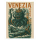 Venice Sea Monster Attack - Vintage Kaiju Travel Poster