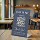 Simple modern blue tabletop pedestal sign for your business featuring your Venmo QR code for customers to scan for payments. Add your business name, phone number and street address or other text in simple white lettering.