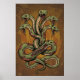 This multi-headed serpent monster illustration brings terrifying elegance into a single artwork. The twisting bodies and venomous expressions create movement and tension, while the earthy orange-brown background enhances the vintage horror aesthetic. Each snake head is uniquely detailed, making the creature feel alive, aggressive, and mythic.