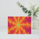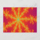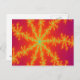 This brightly coloured postcard features a fractal image that is reminiscent of a thunderstorm on Venus. It has a bright orange background with bright yellow lines coming out from the centre that look like burning bolts of lightning. In the centre of each lightning bolt there is a blue line that reminded me of a vein resulting in the title Venous Thunderstorm.