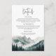 Capture the quiet majesty of the mountains with the Verdant Peaks Misty Forest Watercolor Enclosure Card. This design features a breathtaking, hand-painted landscape of towering evergreens and rolling peaks shrouded in a soft, ethereal mist. The deep forest greens and smoky teals create a moody, organic atmosphere that is perfect for a destination mountain wedding or an intimate woodland ceremony.