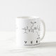 Verl spelled out in amino acids as V E R L (Valine Glutamic acid Arginine Leucine) on a mug for the scientist in you.