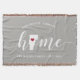 Show some home state pride with this cute rustic gray throw blanket featuring "home" in white calligraphy script lettering with a silhouette map of the state of Vermont standing in for the letter "O." A red heart illustration inside the state map completes the design; you can change the position of the heart to your home city by opening the design tool and dragging the heart shape to your favorite spot. Personalize with your home city, family name and year established to create a perfect and memorable housewarming gift or addition to your new home.