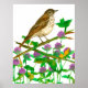 A poster decorated with a hermit thrush with purple clover flowers illustrated with ink and watercolor. Inspired by the state bird and state flower of Vermont. You can edit the text to fit your needs.