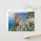Postcard of the colourful houses of the small fishing town Vernazza, one of the Cinque Terre villages, built on a rock at the Mediterranean coast of Liguria, near La Spezia in Italy.
