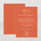 This Verona Sunset Elegant Orange Floral Wedding Details Enclosure Card showcases a delicate line art flower on a vibrant orange background, with modern typography and script calligraphy. It is fully customisable with the couple's names, reception, hotel, RSVP, and other details. The formal design and wording will add a touch of elegance to your wedding celebration.