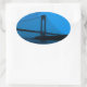 A digital art piece of the Staten Island end of the Verrazano Narrows bridge in blue shades