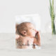 Personalised with baby's photo on the front and special message, birth stats, parent's names inside of this birth announcement folded card. This design uses an elegant, modern script font for the words "Thank You" for a touch of sophistication. Express your excitement in announcing the birth of your child and send your gratitude at the same time. (Vertical format design)