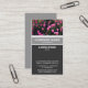 A business card template with an attractive vertical banded design in shades of grey and white with a decorative image texture area at the top. Company name and business type on the main band with Name, title and other address and contact details below, The reverse side of the card has been left blank with a mid grey flat colour. This can be left blank or further customised.