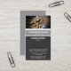 A business card template with an attractive vertical banded design in shades of grey and white with a decorative image texture area at the top. Company name and business type on the main band with Name, title and other address and contact details below, The reverse side of the card has been left blank with a mid grey flat colour. This can be left blank or further customised.
