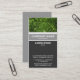 A business card template with an attractive vertical banded design in shades of grey and white with a decorative image texture area at the top. Company name and business type on the main band with Name, title and other address and contact details below, The reverse side of the card has been left blank with a mid grey flat colour. This can be left blank or further customised.