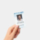 Modern vertical employee ID badge in a blue gradient design featuring a large photo area, editable name, title, company logo, and barcode. Perfect for corporate, retail, or office teams. Easy to customise for your professional needs.