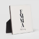 Vertical layout featuring bold serif letters in black stacked over an ivory background. The name vertically runs down the centre with a small phrase "est. 2024" beneath, creating a clean, modern text-focused desk accent.
