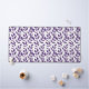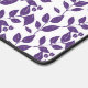 This botanical pattern features stylised purple leaves and small berries arranged in vertical columns across a crisp white background. Each element is uniformly spaced and orientated, creating a structured yet organic flow. The elongated leaf shapes and subtle vein details add texture and depth, while the consistent repetition evokes a sense of calm and order. The contrast between the rich purple tones and the light backdrop gives the design a fresh, modern appeal.