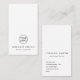 Modern, vertical, white custom logo business cards with your name and title on the front. Customisable template fields for name, title and contact information on the back. You can change background and font colours with the design tool. Elegant and stylish design for an accountant, consultant, lawyer, doctor etc
