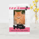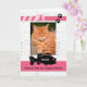 Add your vertical or portrait orientated cat's photo to this adorable card from the pet, featuring pink, white and black with a toy mouse, food bowl and a fish shaped I.D. tag where you put your kitty's name. Cute message inside is fully customisable for you to write your own message, suitable for birthdays or any occasion when Mum or Dad need a card from their favourite furry feline.