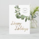 Replace the logo with your own branding, and personalise the message and company name sign-off to make this card uniquely yours. Our modern wreath illustration in gold, green, and white adds a touch of elegance and sophistication to the design, making it suitable for any business.