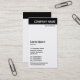 A vertical business card template with a black header. All details on the front with the back left blank, which can be left as is or further customised. The design also allows plenty of space for the addition of other elements e.g. a logo.