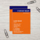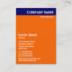 A vertical business card template with a dark blue header. All details on the front with the back left blank, which can be left as is or further customised. The design also allows plenty of space for the addition of other elements e.g. a logo.