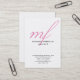 Vertical modern pink white handwriting monogram business card